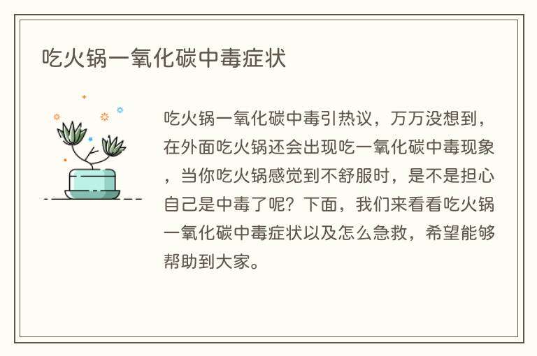 吃火锅一氧化碳中毒引热议,万万没想到,在外面吃火锅还会出现吃一氧化碳中毒现象,当你吃火锅感觉到不舒服时,是不是担心自己是中毒了呢?下面,我们来看看吃火锅一氧化碳中毒症状以及怎么急救,希望能够帮助到大家。