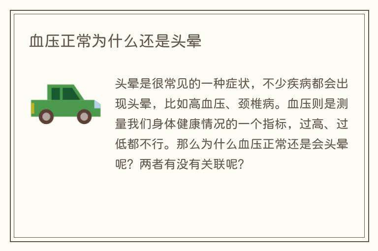 头晕是很常见的一种症状,不少疾病都会出现头晕,比如高血压、颈椎病。血压则是测量我们身体健康情况的一个指标,过高、过低都不行。那么为什么血压正常还是会头晕呢?两者有没有关联呢?