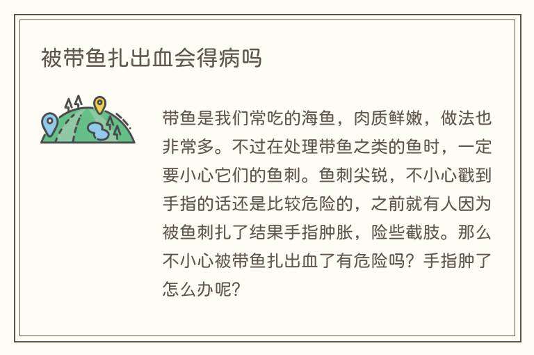 这种情况可能会导致局部感染,但是如果处理得当,通常不会被感染。 带鱼是一种海产品,传播病原体的可能性相对较小,但也可能引起某些病原体感染。有必要尽可能多地挤出血液,然后用生理盐水冲洗,然后用碘伏消毒。如果有借助工具的话,还要注意先给工具消毒再使用,另外也可以打破伤风以防万一。