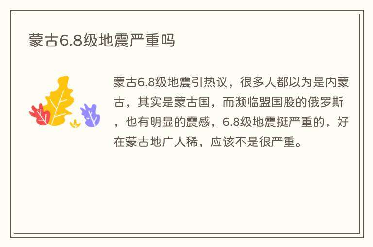 蒙古6.8级地震严重吗