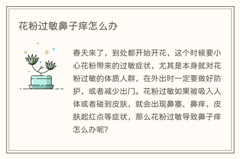 春天来了,到处都开始开花,这个时候要小心花粉带来的过敏症状,尤其是本身就对花粉过敏的体质人群,在外出时一定要做好防护,或者减少出门。花粉过敏如果被吸入人体或者碰到皮肤,就会出现鼻塞、鼻痒,皮肤起红点等症状,那么花粉过敏导致鼻子痒怎么办呢?