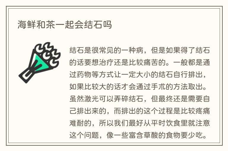 1、海鲜和茶一起会结石吗