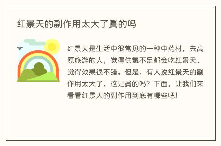 红景天是生活中很常见的一种中药材,去高原旅游的人,觉得供氧不足都会吃红景天,觉得效果很不错。但是,有人说红景天的副作用太大了,这是真的吗?下面,让我们来看看红景天的副作用到底有哪些吧!