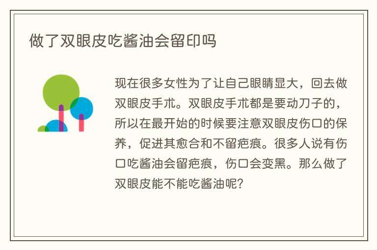一、做了双眼皮吃酱油会留印吗
