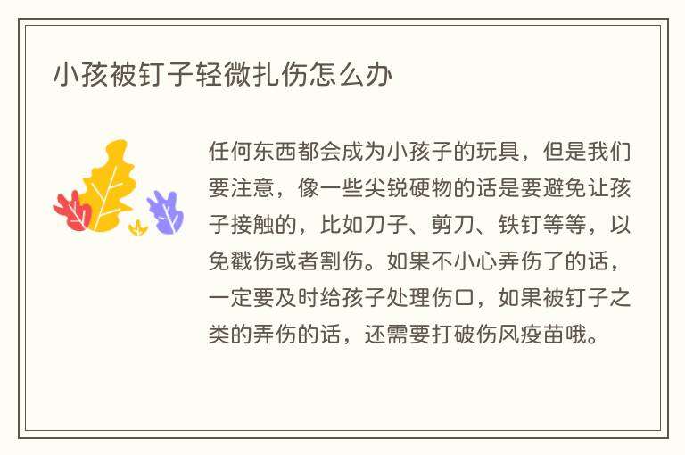 任何东西都会成为小孩子的玩具,但是我们要注意,像一些尖锐硬物的话是要避免让孩子接触的,比如刀子、剪刀、铁钉等等,以免戳伤或者割伤。如果不小心弄伤了的话,一定要及时给孩子处理伤口,如果被钉子之类的弄伤的话,还需要打破伤风疫苗哦。