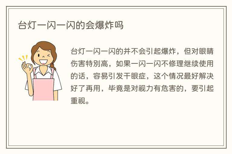 台灯一闪一闪的并不会引起爆炸,但对眼睛伤害特别高,如果一闪一闪不修理继续使用的话,容易引发干眼症,这个情况最好解决好了再用,毕竟是对视力有危害的,要引起重视。