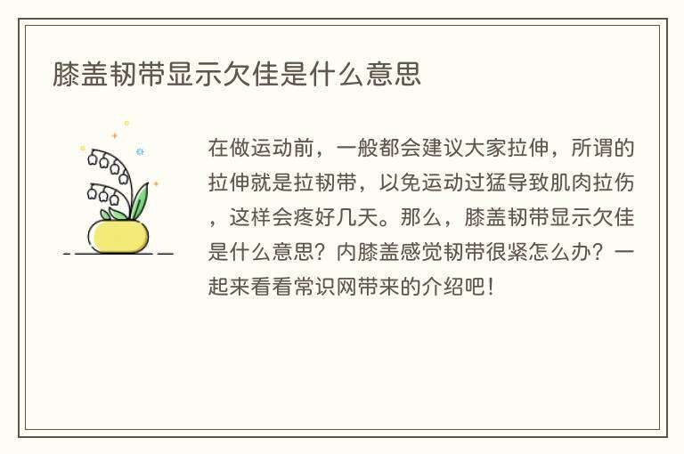 在做运动前,一般都会建议大家拉伸,所谓的拉伸就是拉韧带,以免运动过猛导致肌肉拉伤,这样会疼好几天。那么,膝盖韧带显示欠佳是什么意思?内膝盖感觉韧带很紧怎么办?一起来看看常识网带来的介绍吧!