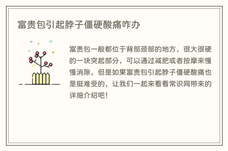 富贵包一般都位于背部颈部的地方,很大很硬的一块突起部分,可以通过减肥或者按摩来慢慢消除,但是如果富贵包引起脖子僵硬酸痛也是挺难受的,让我们一起来看看常识网带来的详细介绍吧!