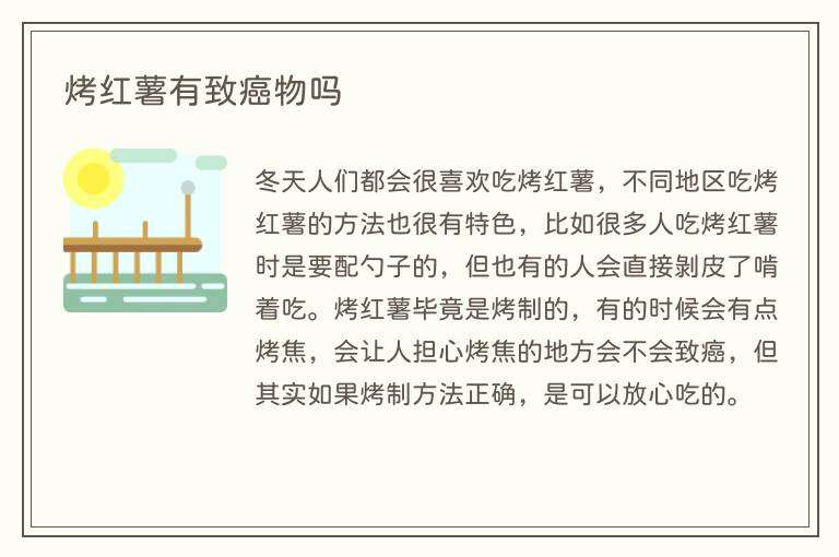 冬天人们都会很喜欢吃烤红薯,不同地区吃烤红薯的方法也很有特色,比如很多人吃烤红薯时是要配勺子的,但也有的人会直接剥皮了啃着吃。烤红薯毕竟是烤制的,有的时候会有点烤焦,会让人担心烤焦的地方会不会致癌,但其实如果烤制方法正确,是可以放心吃的。