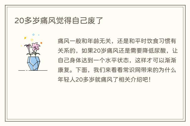 20多岁痛风觉得自己废了