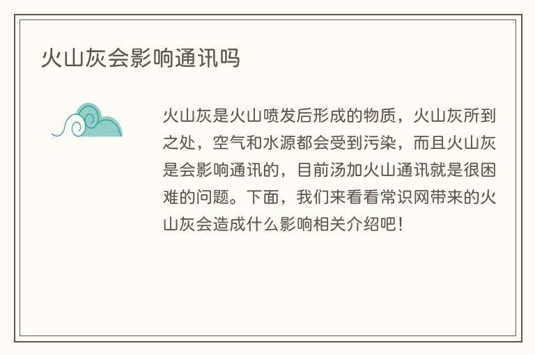 火山灰是火山喷发后形成的物质,火山灰所到之处,空气和水源都会受到污染,而且火山灰是会影响通讯的,目前汤加火山通讯就是很困难的问题。下面,我们来看看常识网带来的火山灰会造成什么影响相关介绍吧!