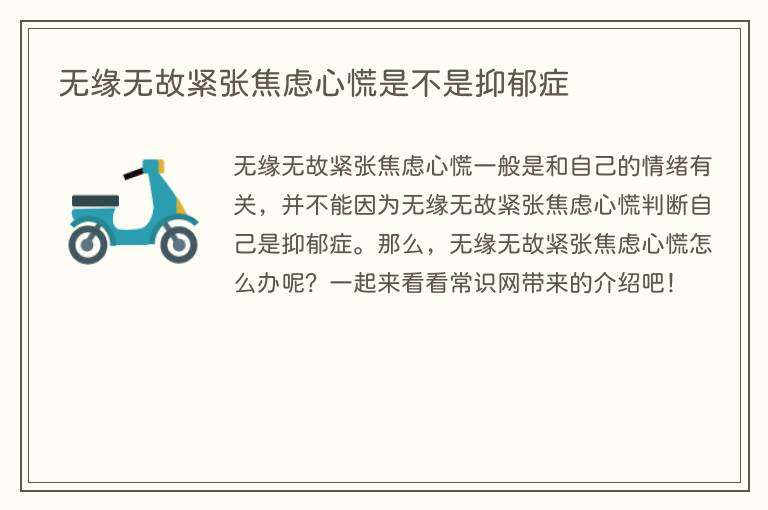 无缘无故的焦虑、焦虑和恐慌不一定是抑郁症。 神经衰弱、焦虑和心悸也可能是植物神经功能障碍引起的。 也可能与心律失常、心肌功能不全等有关。高血压患者血压波动明显时也会出现上述症状。 患者通常需要放松身心,缓解压力,避免疲劳熬夜,保证充足睡眠,必要时可给予一些抗焦虑药物进行治疗。