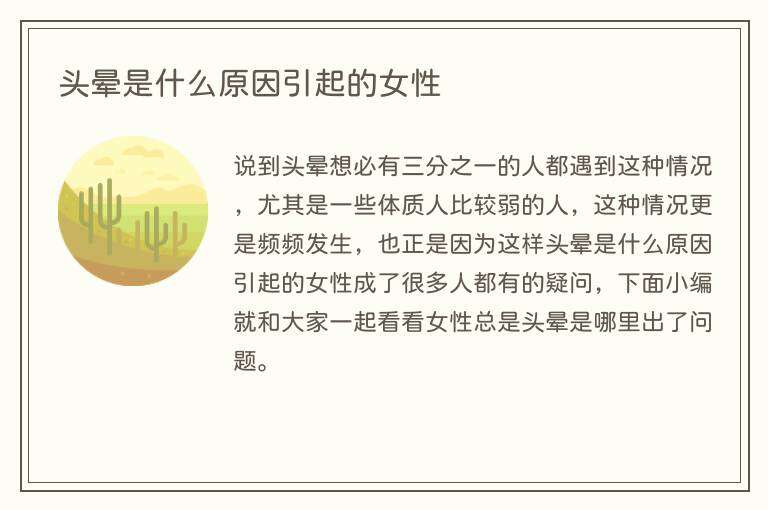 说到头晕想必有三分之一的人都遇到这种情况,尤其是一些体质人比较弱的人,这种情况更是频频发生,也正是因为这样头晕是什么原因引起的女性成了很多人都有的疑问,下面小编就和大家一起看看女性总是头晕是哪里出了问题。