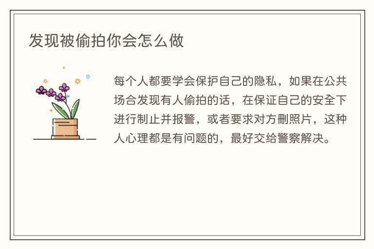 每个人都要学会保护自己的隐私,如果在公共场合发现有人偷拍的话,在保证自己的安全下进行制止并报警,或者要求对方删照片,这种人心理都是有问题的,最好交给警察解决。