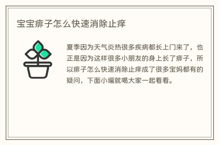夏季因为天气炎热很多疾病都长上门来了,也正是因为这样很多小朋友的身上长了痱子,所以痱子怎么快速消除止痒成了很多宝妈都有的疑问,下面小编就喝大家一起看看。