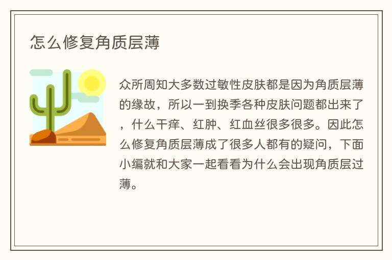 众所周知大多数过敏性皮肤都是因为角质层薄的缘故,所以一到换季各种皮肤问题都出来了,什么干痒、红肿、红血丝很多很多。因此怎么修复角质层薄成了很多人都有的疑问,下面小编就和大家一起看看为什么会出现角质层过薄。