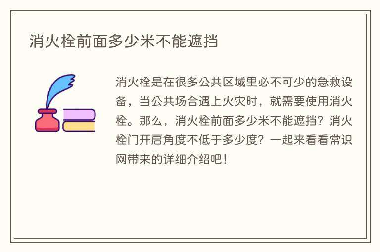 消火栓是在很多公共区域里必不可少的急救设备,当公共场合遇上火灾时,就需要使用消火栓。那么,消火栓前面多少米不能遮挡?消火栓门开启角度不低于多少度?一起来看看常识网带来的详细介绍吧!