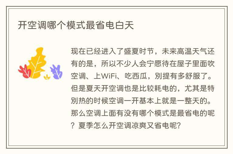 现在已经进入了盛夏时节,未来高温天气还有的是,所以不少人会宁愿待在屋子里面吹空调、上WiFi、吃西瓜,别提有多舒服了。但是夏天开空调也是比较耗电的,尤其是特别热的时候空调一开基本上就是一整天的。那么空调上面有没有哪个模式是最省电的呢?夏季怎么开空调凉爽又省电呢?