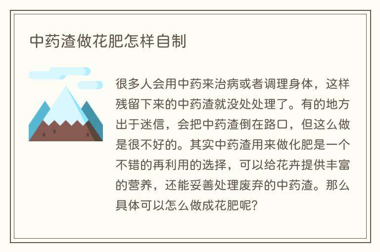 中药渣做花肥怎样自制
