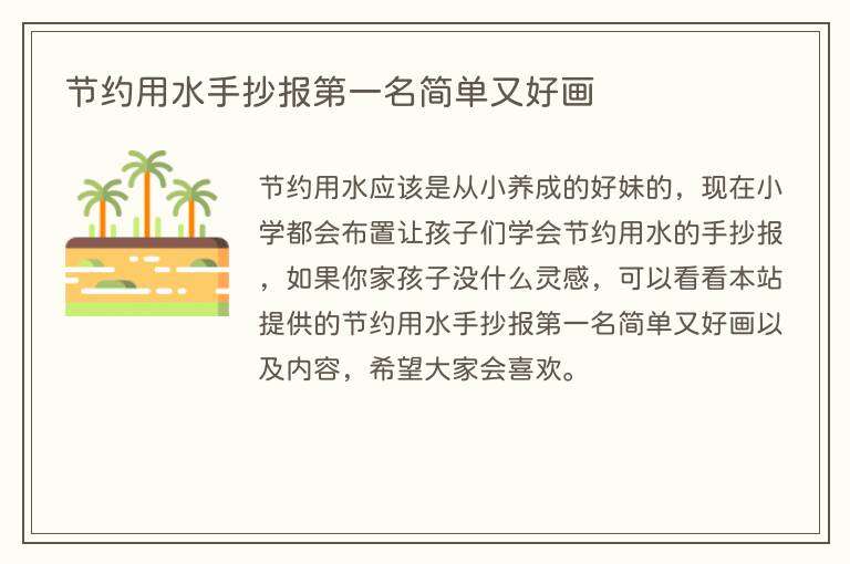 节约用水应该是从小养成的好妹的,现在小学都会布置让孩子们学会节约用水的手抄报,如果你家孩子没什么灵感,可以看看本站提供的节约用水手抄报第一名简单又好画以及内容,希望大家会喜欢。