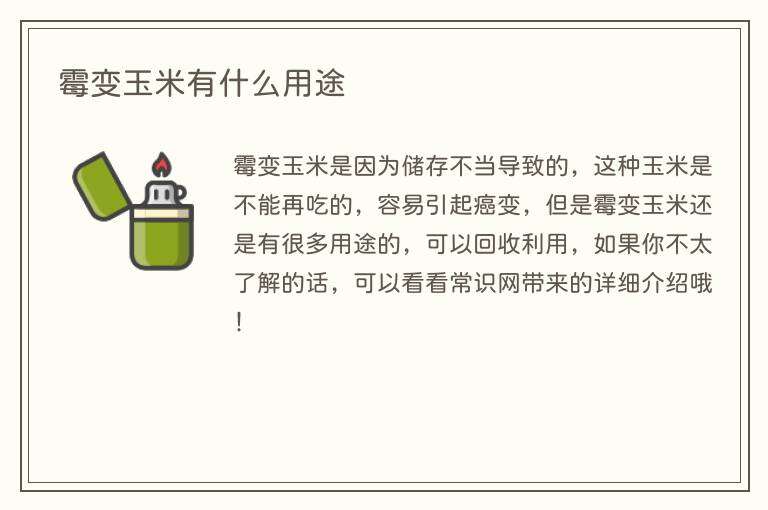 霉变玉米是因为储存不当导致的,这种玉米是不能再吃的,容易引起癌变,但是霉变玉米还是有很多用途的,可以回收利用,如果你不太了解的话,可以看看常识网带来的详细介绍哦!