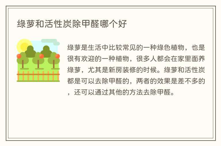 绿萝和活性炭除甲醛哪个好