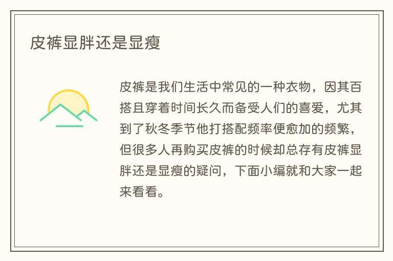 皮裤是我们生活中常见的一种衣物,因其百搭且穿着时间长久而备受人们的喜爱,尤其到了秋冬季节他打搭配频率便愈加的频繁,但很多人再购买皮裤的时候却总存有皮裤显胖还是显瘦的疑问,下面小编就和大家一起来看看。