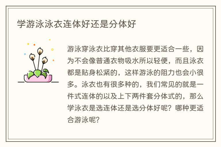 学游泳泳衣连体好还是分体好