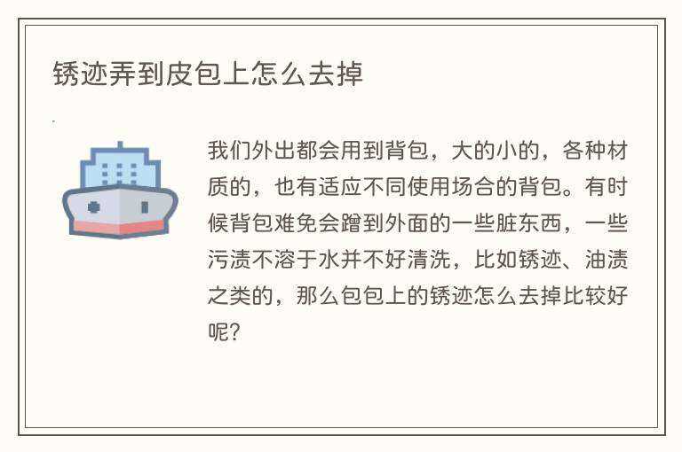 我们外出都会用到背包,大的小的,各种材质的,也有适应不同使用场合的背包。有时候背包难免会蹭到外面的一些脏东西,一些污渍不溶于水并不好清洗,比如锈迹、油渍之类的,那么包包上的锈迹怎么去掉比较好呢?