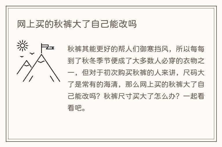 网上买的秋裤大了是可以自己改的,但是如果你购买的物品还在保障期内是可以直接找商家进行码数兑换的,但前提条件是你购买的秋裤保持原样,标签尚在。如果二者有一处不同只能自己改了。