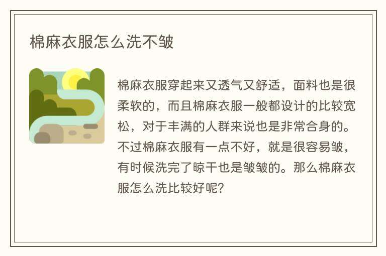 棉麻衣服穿起来又透气又舒适,面料也是很柔软的,而且棉麻衣服一般都设计的比较宽松,对于丰满的人群来说也是非常合身的。不过棉麻衣服有一点不好,就是很容易皱,有时候洗完了晾干也是皱皱的。那么棉麻衣服怎么洗比较好呢?