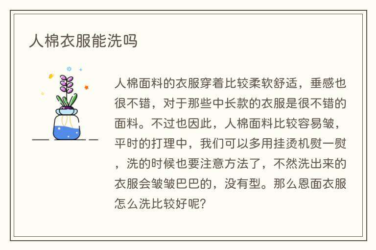 人棉面料的衣服可以洗,但是要注意清洗方法。