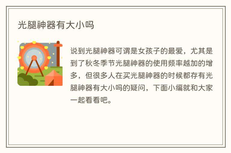 说到光腿神器可谓是女孩子的最爱,尤其是到了秋冬季节光腿神器的使用频率越加的增多,但很多人在买光腿神器的时候都存有光腿神器有大小吗的疑问,下面小编就和大家一起看看吧。