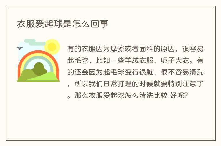 有的衣服因为摩擦或者面料的原因,很容易起毛球,比如一些羊绒衣服,呢子大衣。有的还会因为起毛球变得很脏,很不容易清洗,所以我们日常打理的时候就要特别注意了。那么衣服爱起球怎么清洗比较 好呢?