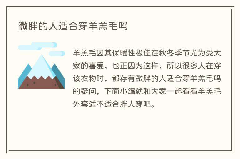 羊羔毛因其保暖性极佳在秋冬季节尤为受大家的喜爱,也正因为这样,所以很多人在穿该衣物时,都存有微胖的人适合穿羊羔毛吗的疑问,下面小编就和大家一起看看羊羔毛外套适不适合胖人穿吧。