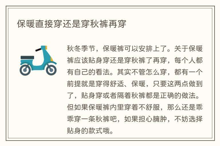 保暖直接穿还是穿秋裤再穿
