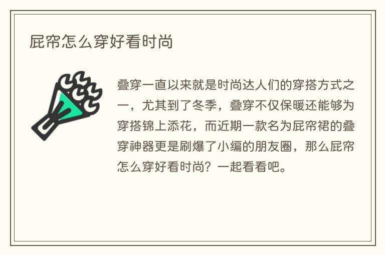 叠穿一直以来就是时尚达人们的穿搭方式之一,尤其到了冬季,叠穿不仅保暖还能够为穿搭锦上添花,而近期一款名为屁帘裙的叠穿神器更是刷爆了小编的朋友圈,那么屁帘怎么穿好看时尚?一起看看吧。