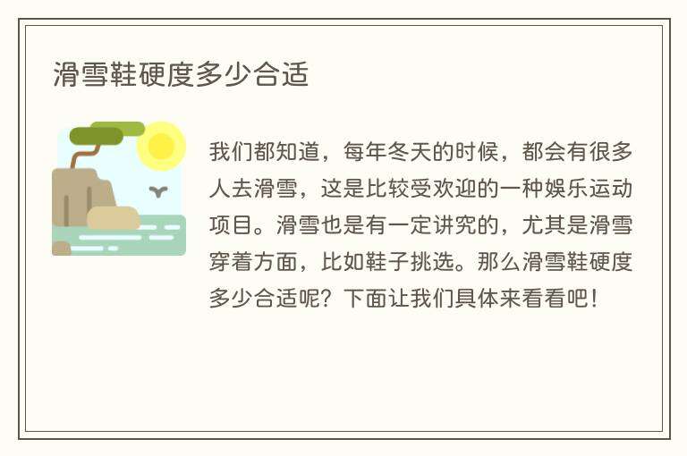 我们都知道,每年冬天的时候,都会有很多人去滑雪,这是比较受欢迎的一种娱乐运动项目。滑雪也是有一定讲究的,尤其是滑雪穿着方面,比如鞋子挑选。那么滑雪鞋硬度多少合适呢?下面让我们具体来看看吧!