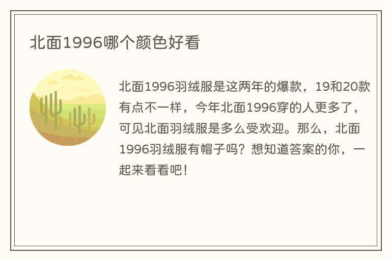 北面1996羽绒服是这两年的爆款,19和20款有点不一样,今年北面1996穿的人更多了,可见北面羽绒服是多么受欢迎。那么,北面1996羽绒服有帽子吗?想知道答案的你,一起来看看吧!