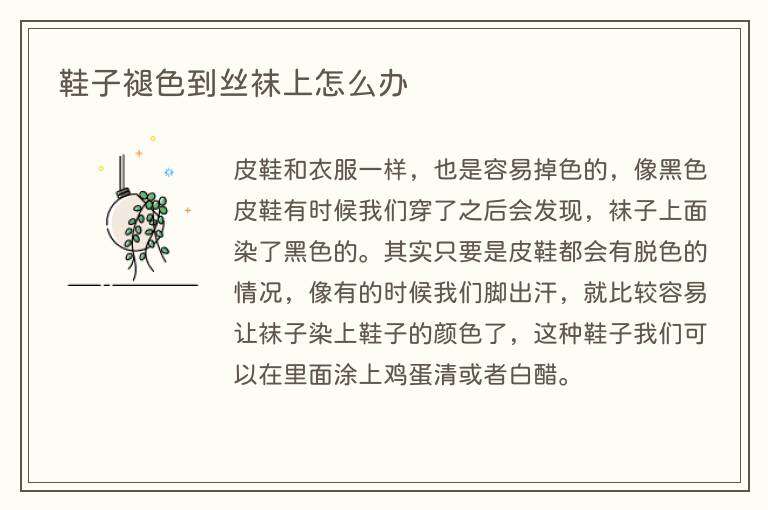 皮鞋和衣服一样,也是容易掉色的,像黑色皮鞋有时候我们穿了之后会发现,袜子上面染了黑色的。其实只要是皮鞋都会有脱色的情况,像有的时候我们脚出汗,就比较容易让袜子染上鞋子的颜色了,这种鞋子我们可以在里面涂上鸡蛋清或者白醋。