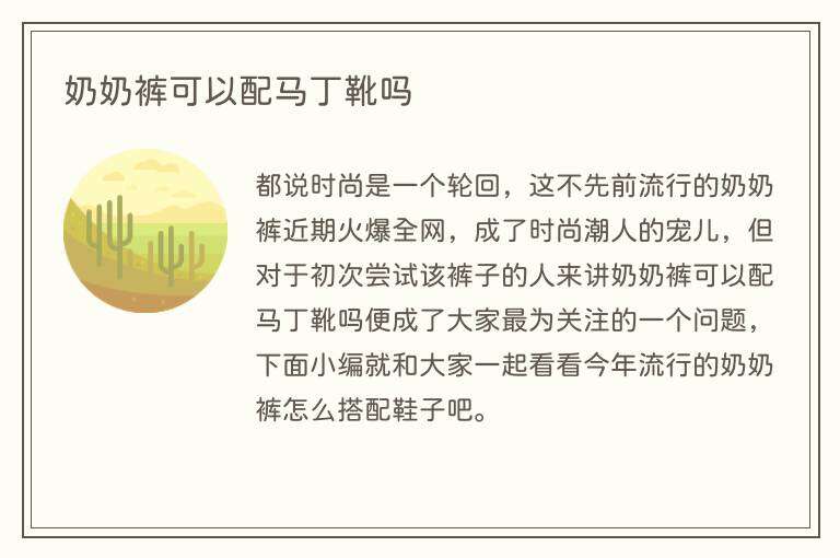都说时尚是一个轮回,这不先前流行的奶奶裤近期火爆全网,成了时尚潮人的宠儿,但对于初次尝试该裤子的人来讲奶奶裤可以配马丁靴吗便成了大家最为关注的一个问题,下面小编就和大家一起看看今年流行的奶奶裤怎么搭配鞋子吧。