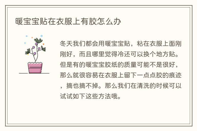 冬天我们都会用暖宝宝贴,粘在衣服上面刚刚好,而且哪里觉得冷还可以换个地方贴。但是有的暖宝宝胶纸的质量可能不是很好,那么就很容易在衣服上留下一点点胶的痕迹,摘也摘不掉。那么我们在清洗的时候可以试试如下这些方法哦。