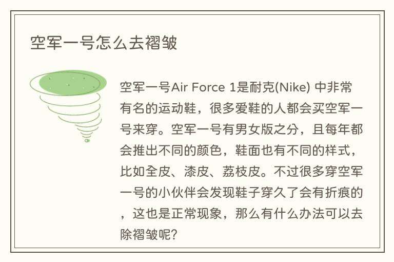 空军一号Air Force 1是耐克(Nike) 中非常有名的运动鞋,很多爱鞋的人都会买空军一号来穿。空军一号有男女版之分,且每年都会推出不同的颜色,鞋面也有不同的样式,比如全皮、漆皮、荔枝皮。不过很多穿空军一号的小伙伴会发现鞋子穿久了会有折痕的,这也是正常现象,那么有什么办法可以去除褶皱呢?