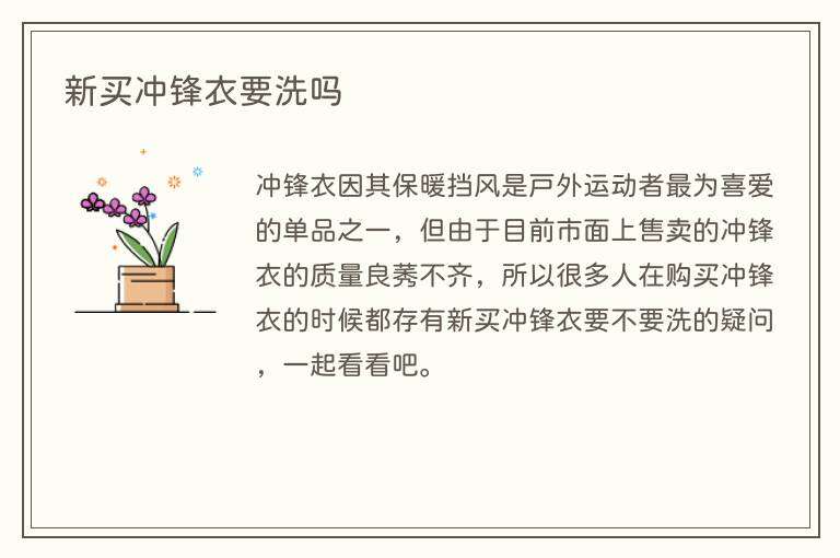冲锋衣因其保暖挡风是户外运动者最为喜爱的单品之一,但由于目前市面上售卖的冲锋衣的质量良莠不齐,所以很多人在购买冲锋衣的时候都存有新买冲锋衣要不要洗的疑问,一起看看吧。