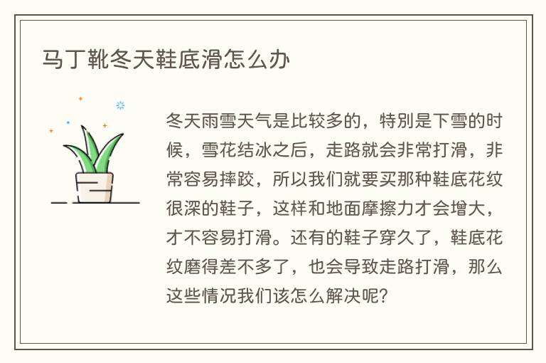 冬天雨雪天气是比较多的,特别是下雪的时候,雪花结冰之后,走路就会非常打滑,非常容易摔跤,所以我们就要买那种鞋底花纹很深的鞋子,这样和地面摩擦力才会增大,才不容易打滑。还有的鞋子穿久了,鞋底花纹磨得差不多了,也会导致走路打滑,那么这些情况我们该怎么解决呢?