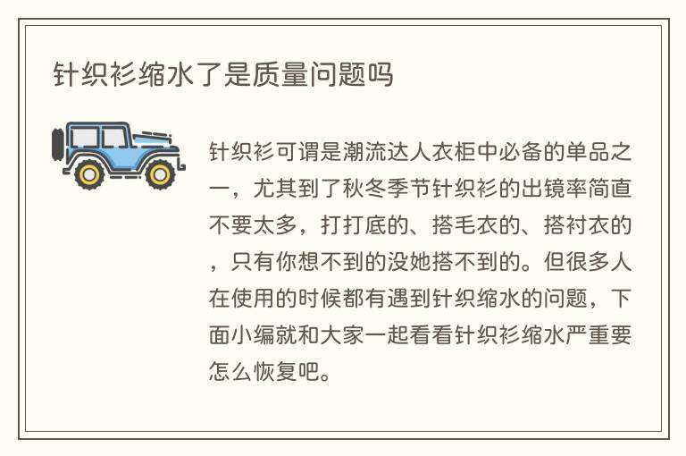 针织衫之所以会缩水多是因其面料导致的,所以一般情况下不应该算是质量问题。如果不喜欢会缩水的衣服的话,建议可以买这些吸水性小的面料,例如涤纶,锦纶这些化学合成纤维,它们的吸水性小,一般而言,缩水性也就比较小。