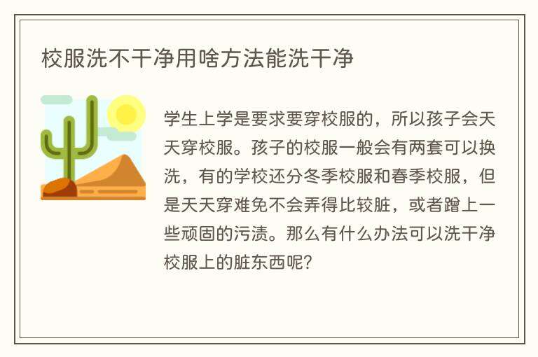 学生上学是要求要穿校服的,所以孩子会天天穿校服。孩子的校服一般会有两套可以换洗,有的学校还分冬季校服和春季校服,但是天天穿难免不会弄得比较脏,或者蹭上一些顽固的污渍。那么有什么办法可以洗干净校服上的脏东西呢?