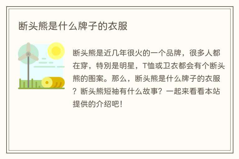 断头熊是近几年很火的一个品牌,很多人都在穿,特别是明星,T恤或卫衣都会有个断头熊的图案。那么,断头熊是什么牌子的衣服?断头熊短袖有什么故事?一起来看看本站提供的介绍吧!