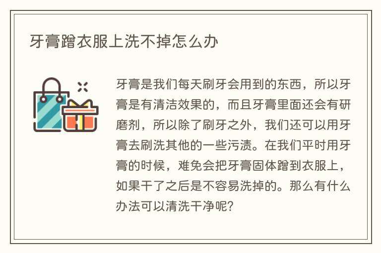 牙膏是我们每天刷牙会用到的东西,所以牙膏是有清洁效果的,而且牙膏里面还会有研磨剂,所以除了刷牙之外,我们还可以用牙膏去刷洗其他的一些污渍。在我们平时用牙膏的时候,难免会把牙膏固体蹭到衣服上,如果干了之后是不容易洗掉的。那么有什么办法可以清洗干净呢?