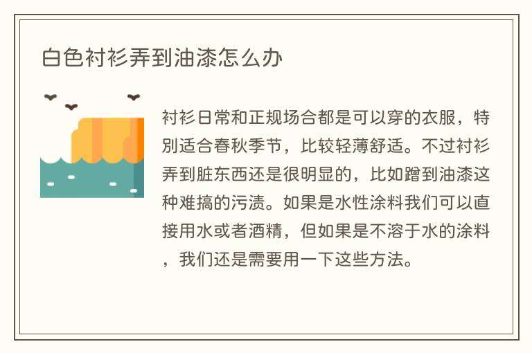 衬衫日常和正规场合都是可以穿的衣服,特别适合春秋季节,比较轻薄舒适。不过衬衫弄到脏东西还是很明显的,比如蹭到油漆这种难搞的污渍。如果是水性涂料我们可以直接用水或者酒精,但如果是不溶于水的涂料,我们还是需要用一下这些方法。